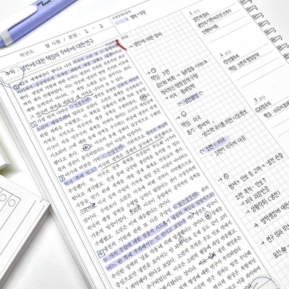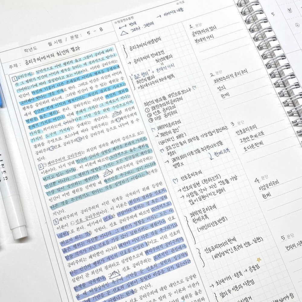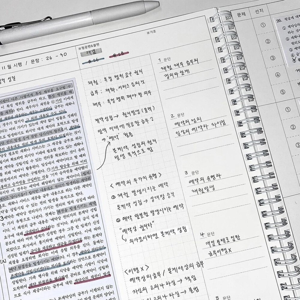 지문을 오려 붙여 지문과 선지 분석 모두 가능한 노트